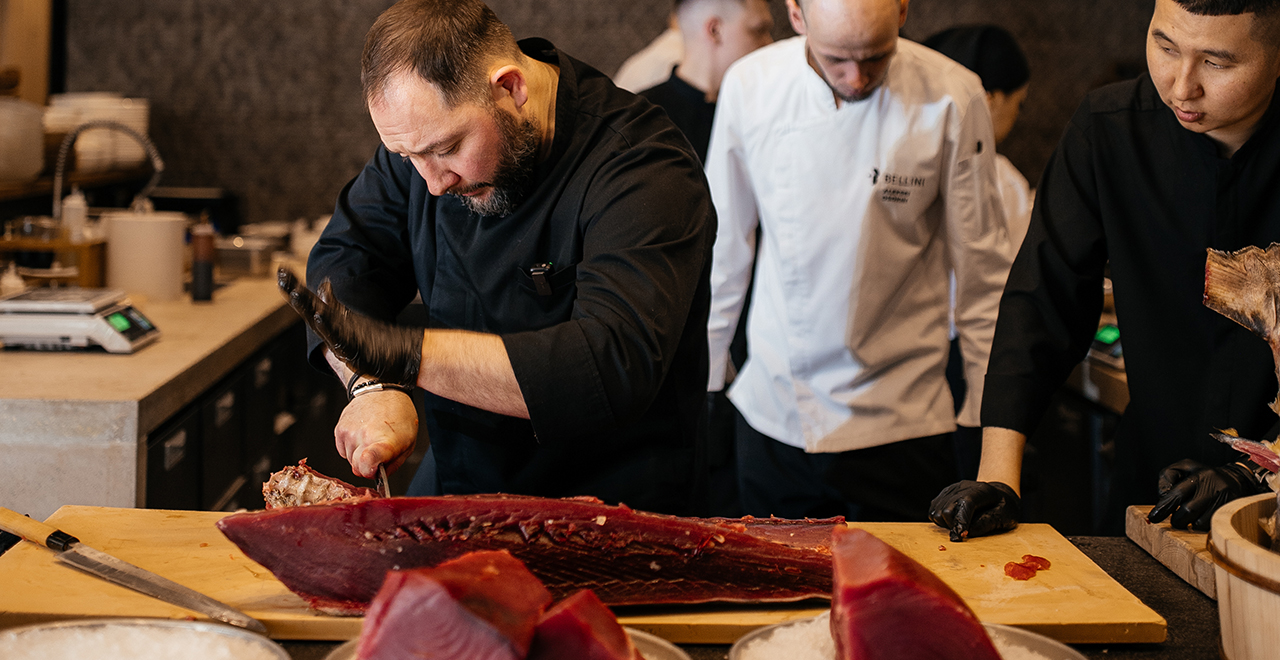 На глазах наших гостей бренд-шеф Роман Чемеренко с командой ресторана превратили разделку и приготовление тунца в завораживающее шоу.